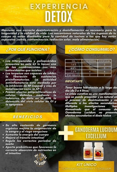 “Mi Taza de Vida” es un producto respaldado por una multinacional asiática llamada GANO EXCEL, quien permite que con la recomendación y el desarrollo de liderazgo a través de una sistema de multiplicación se pueda construir ingresos que permiten la toma de decisiones y la construcción de libertad .
